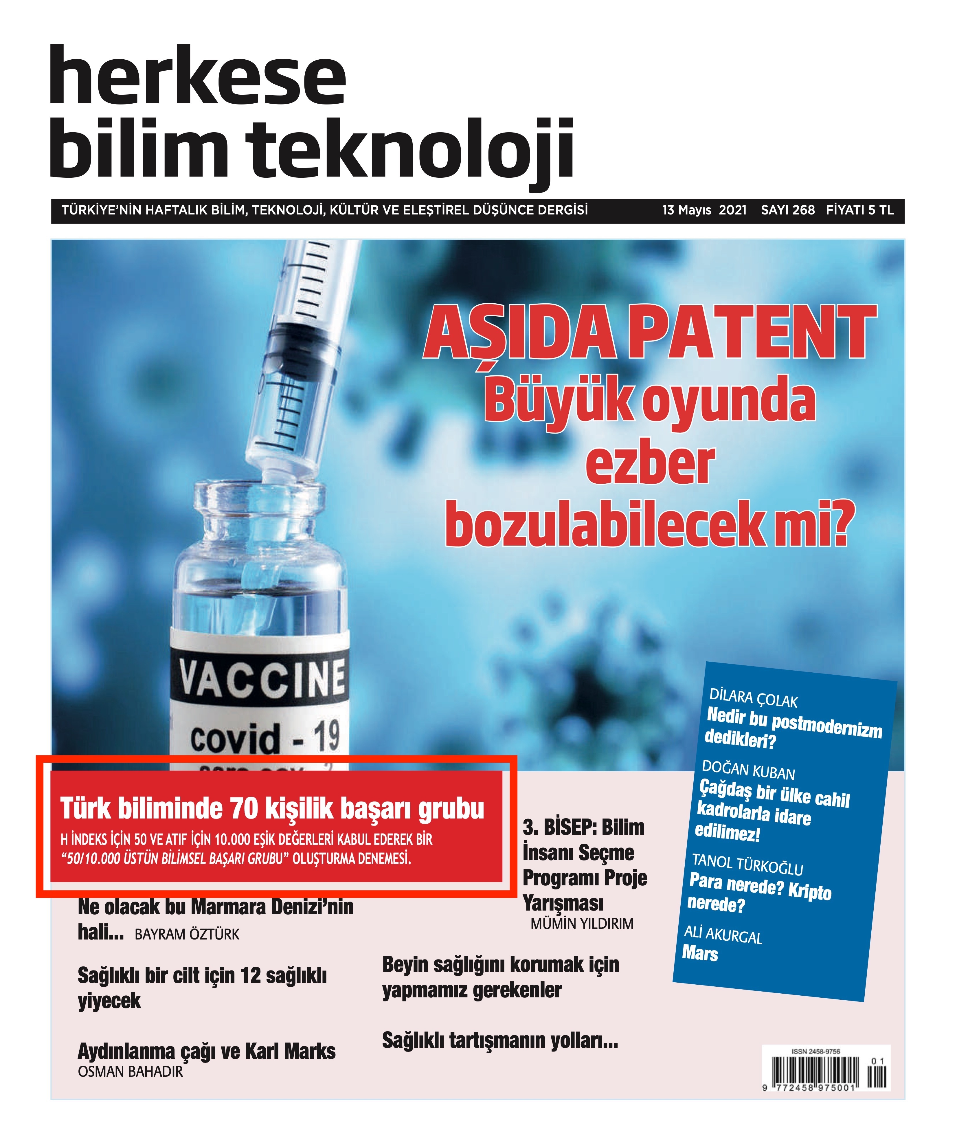 Herkese Bilim Teknoloji'nin bu haftaki 13 Mayıs 2020 tarihli sayısında, "Türk Biliminde 70 Kişilik Başarı Grubu" başlıklı araştırmada Prof. Dr. Adil Denizli de yer aldı.